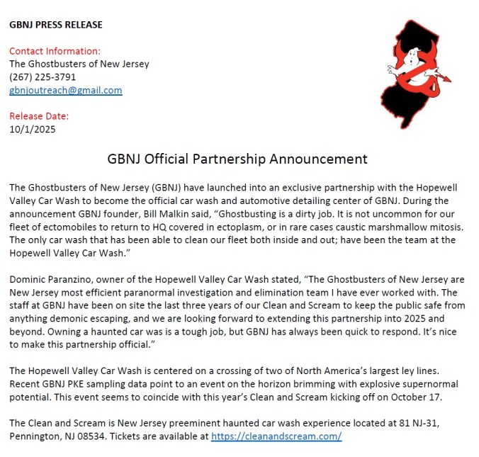 In breaking supernatural news, GBNJ – New Jersey’s own elite Ghostbusters squad – is now booking appearances for events across the state!