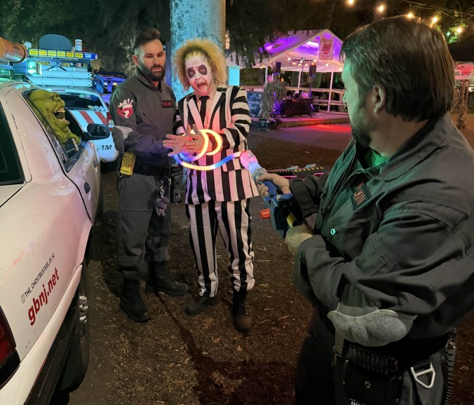 After an extensive investigation, The boys in grey located the source of the disturbance, some Beetle-chump who kept calling himself the “ghost with the most”…whatever that is supposed to mean. Beetle-douche was in a corporal form which rendered our typical zap-n’-trap protocol useless. Troy quickly devised a solution, “The ECTO-2V is an old cop car, so let’s treat him like a criminal.”