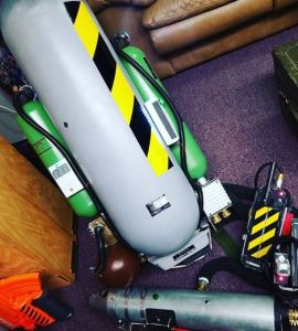 Ready! Set! Slime ’em! Ghostbusters wear this special backpack to get rid of bad feelings and ghostly activity in your neighborhood. Originally created in 1990 as a way to miniaturize the gargantuan slime blower. Andrew Gant built this version that GBNJ employees. Like most things Andrew builds he found a way to somehow make it heaver than the original slime blower while maintaining the smaller profile.